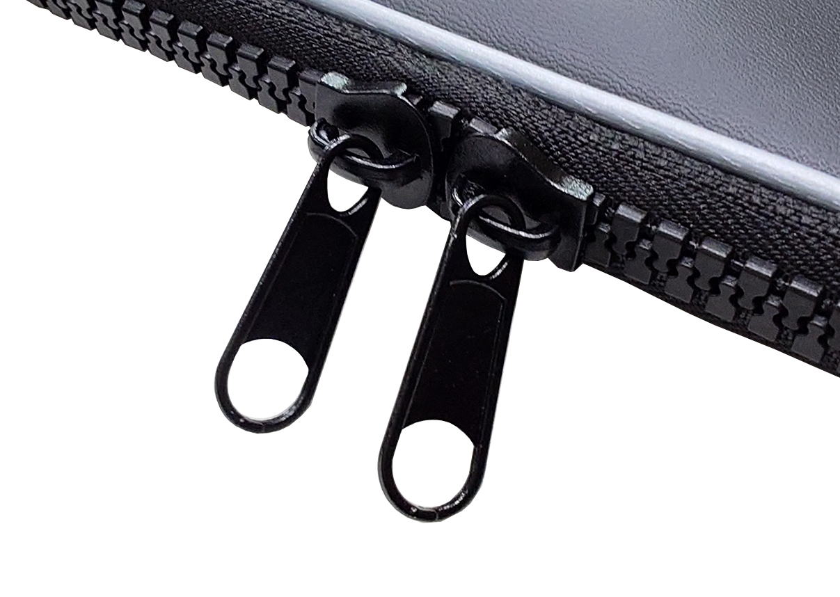 出し入れしやすい大きな開口部に、塩ガミしにくい大型のダブルファスナーを採用