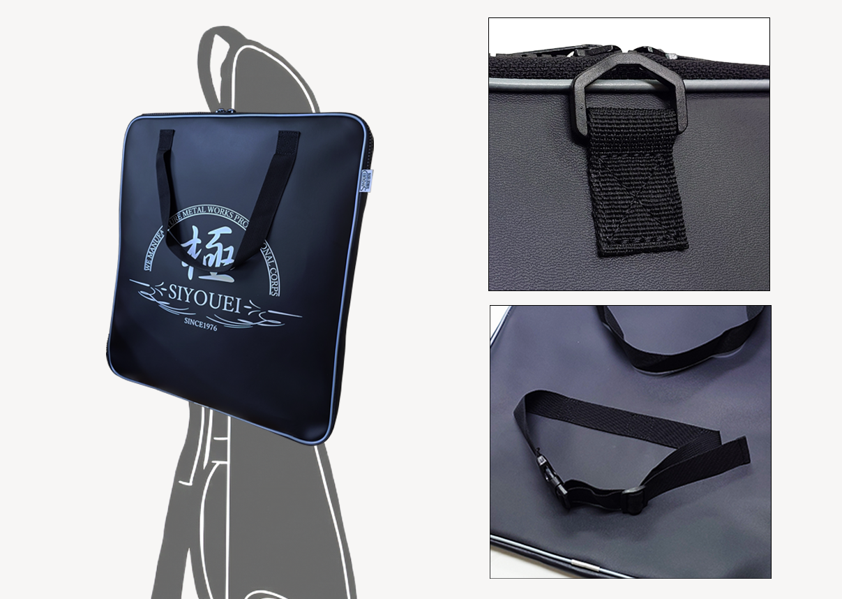 汚れが付きにくく手触りのよいビニールレザー生地に、特別な極ロゴをデザインしました